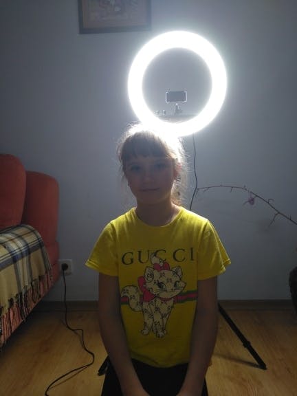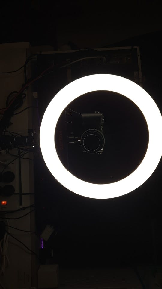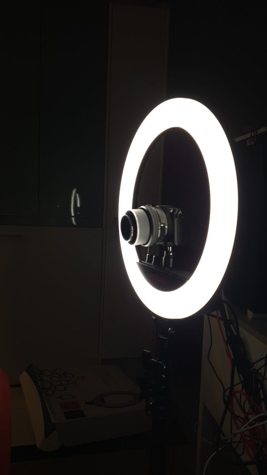 De lamp heeft een ring die bestaat uit LED's. De ring heeft een buitendiameter van 34,5 cm en een binnendiameter van 26,5 cm, wat het boven andere soorten studiolampen verheft. De LED ring wordt ondersteund door een robuust en verstelbaar statief met een flexibele arm die uitschuifbaar is tot een hoogte van 180 cm, uiterst duurzaam en biedt vrije beweging zonder het risico naar binnen te vallen.