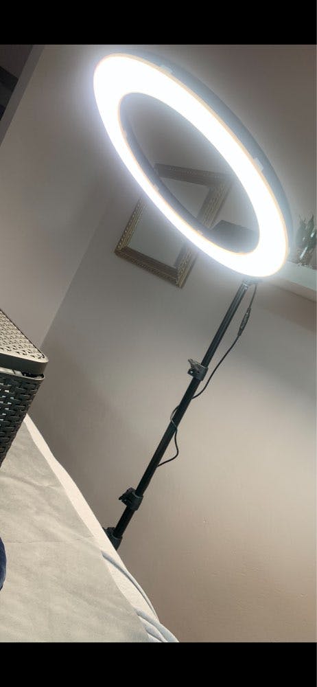 De lamp heeft een ring van unieke LED's met een grote buitendiameter van 48,5 cm en een binnendiameter van 35,5 cm, wat het boven andere soorten studiolampen verheft. De LED ring wordt ondersteund door een robuust en verstelbaar statief met een flexibele arm die uitschuifbaar is tot een hoogte van 180 cm, uiterst duurzaam en biedt vrije beweging zonder het risico naar binnen te vallen.