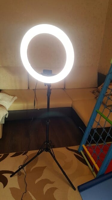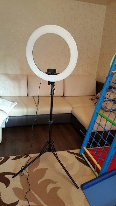 De lamp heeft een ingebouwde statief die indien nodig van de lamp kan worden losgemaakt. Het is mogelijk te gebruiken met zowel telefoons als foto- / video apparaten en biedt meerdere functies. Omdat het statief in de LED ring moet worden geplaatst, vangt het op een perfecte manier het licht.